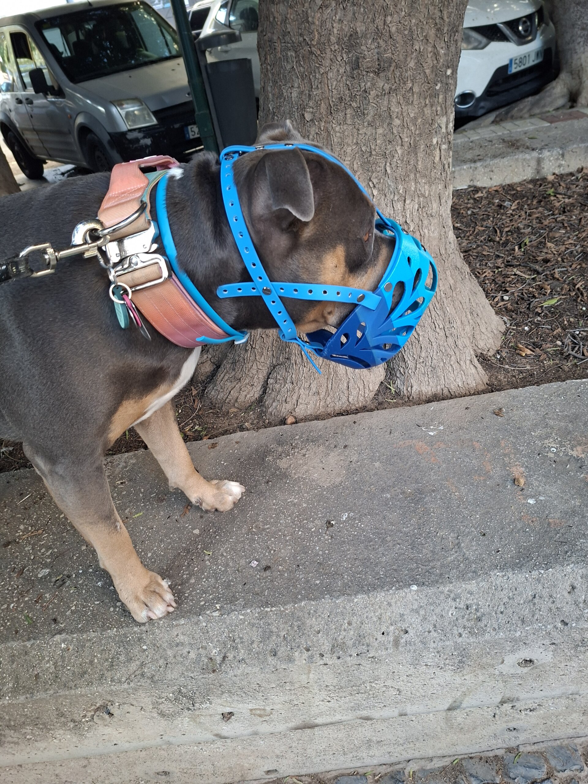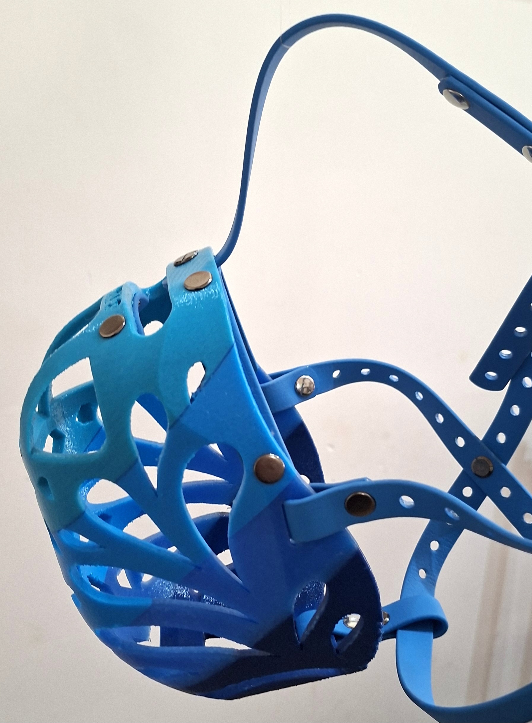 Four colors Custom made TPU muzzle. It can be totally customized, from the quantity of strap colors (choice among 40 colors), to the type of closure (3 choices with 5 variations) and choice of hardware, 2 different colors, all hypoallergenic and nickel free or in stainless steel for dogs with sensitive skin or who do a lot of sport or outdoor, in any case, hardware touching the skin is only stainless steel to avoid allergies.